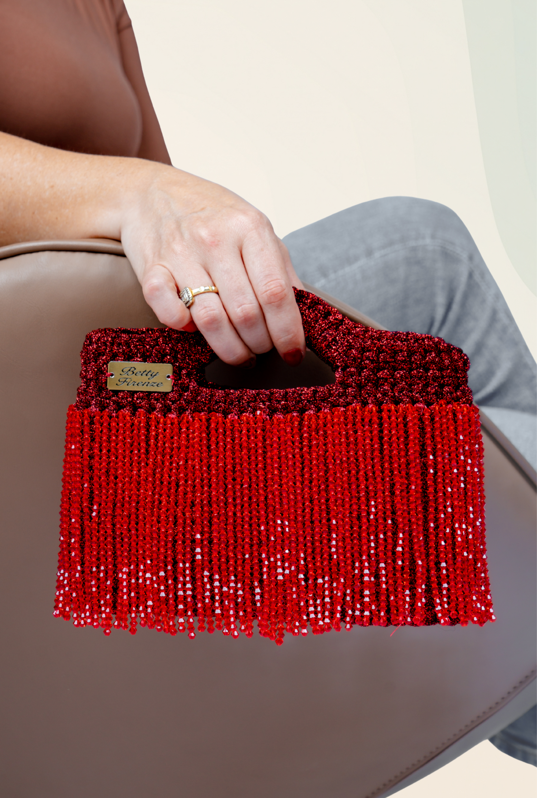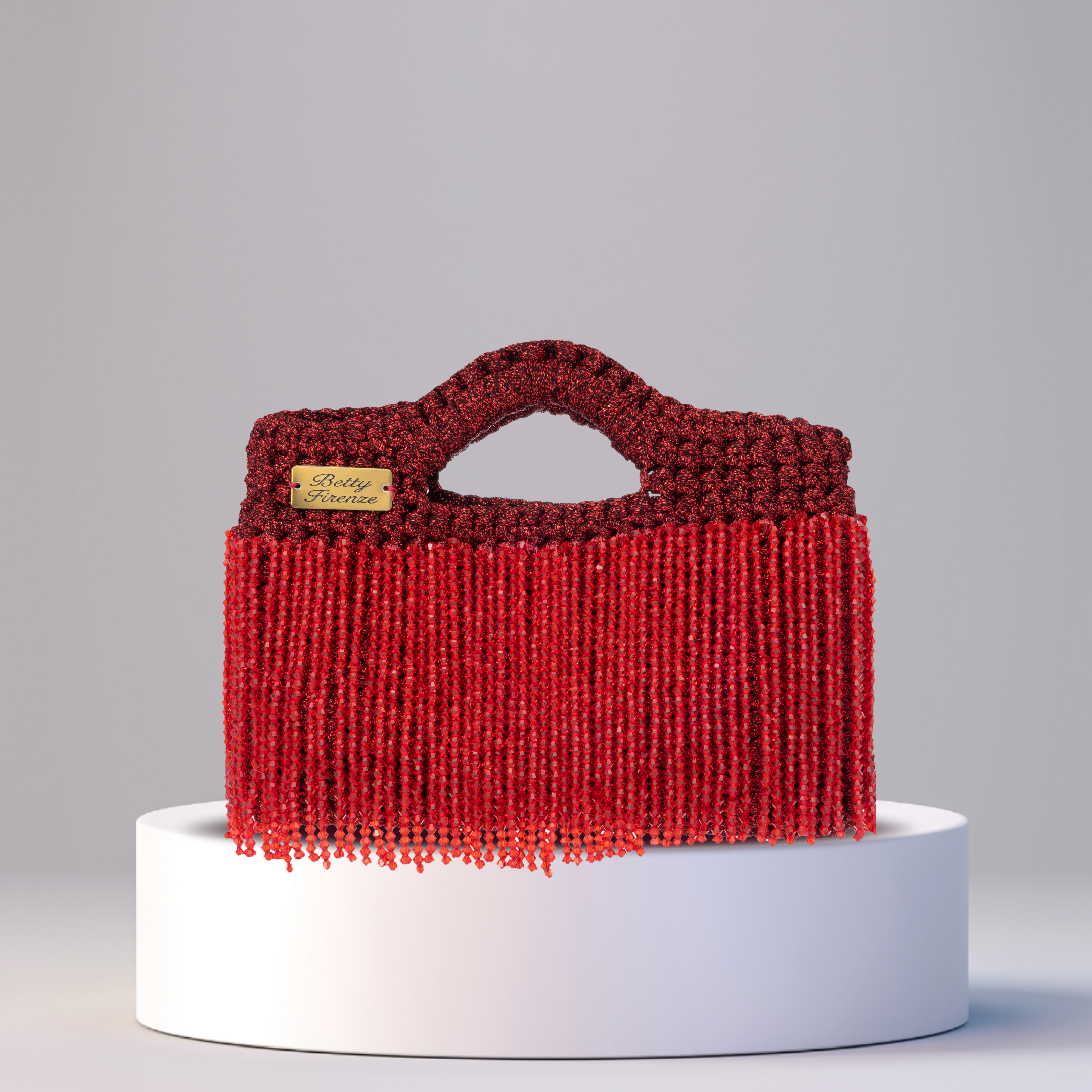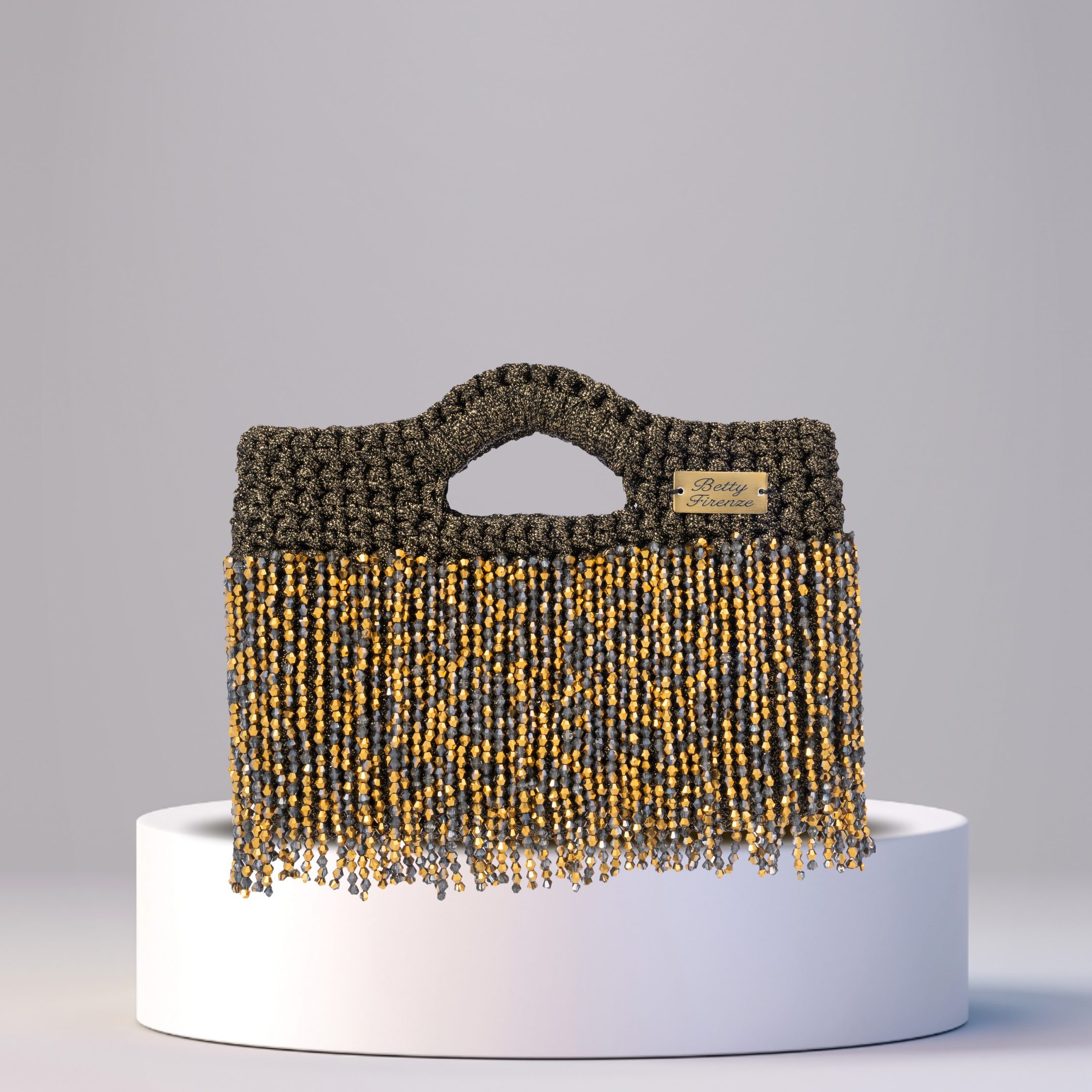Embellished with the signature Betty Firenze emblem in metal.