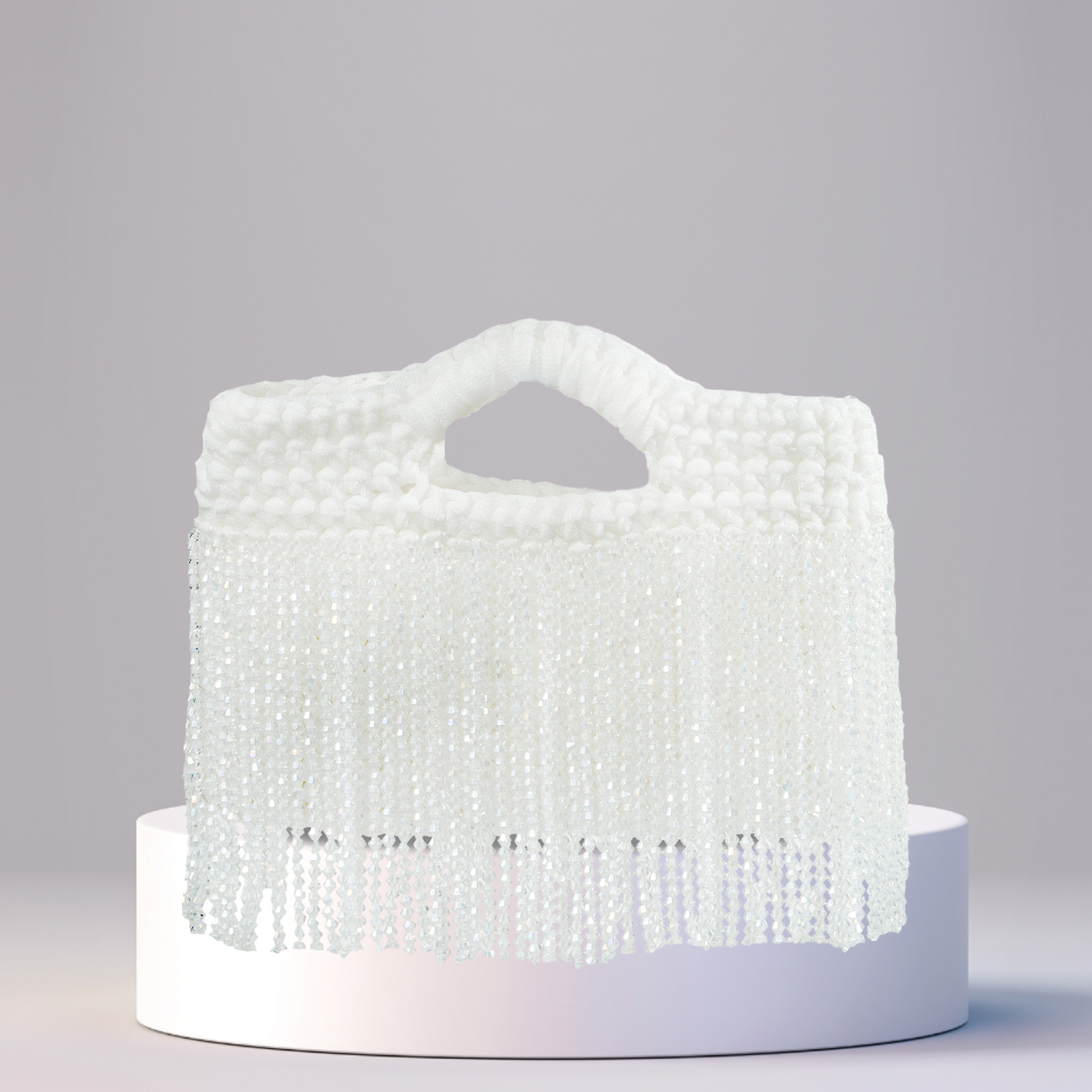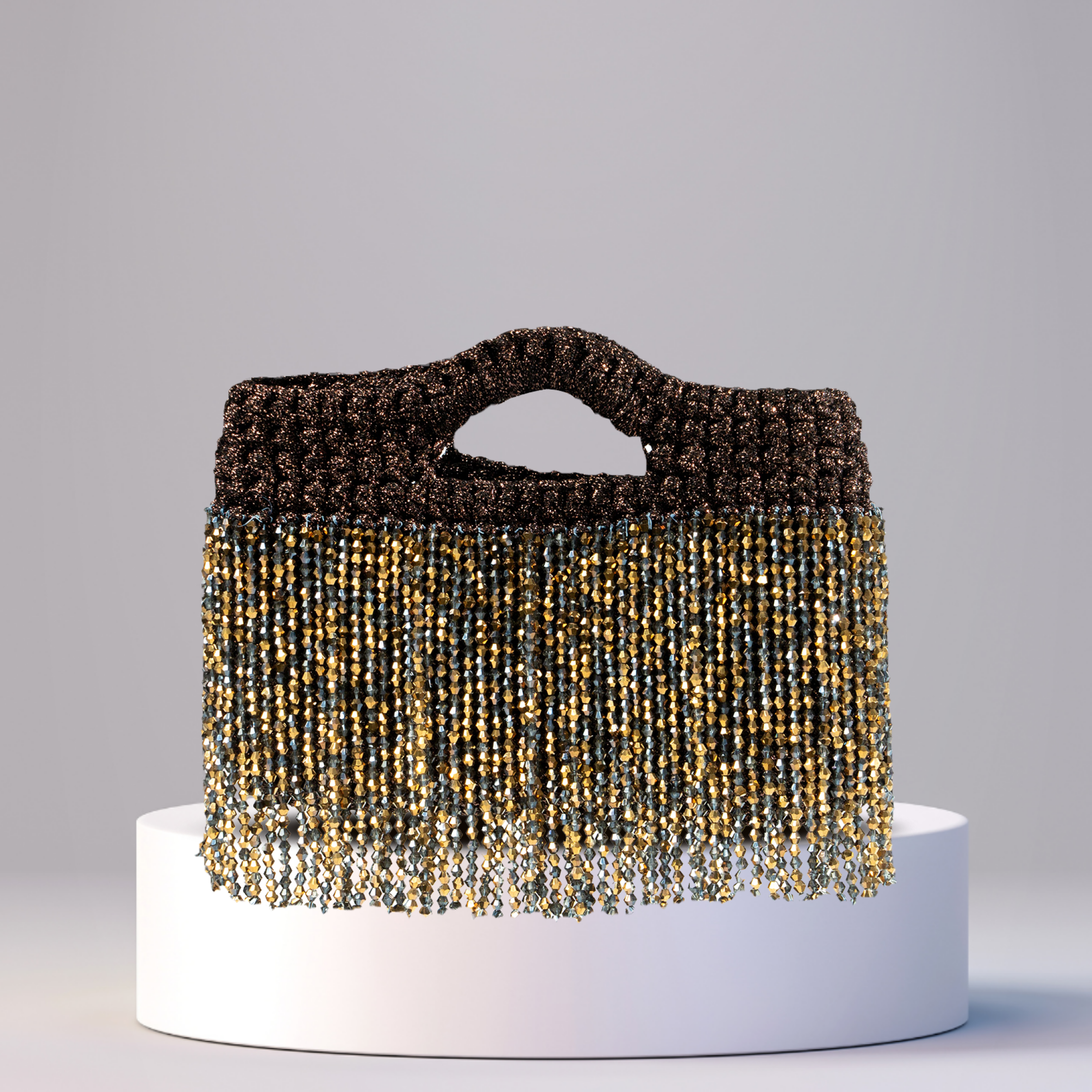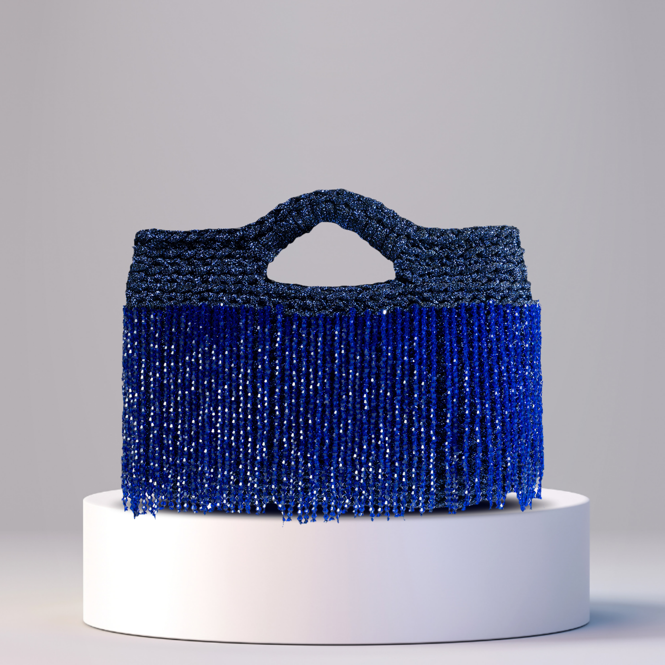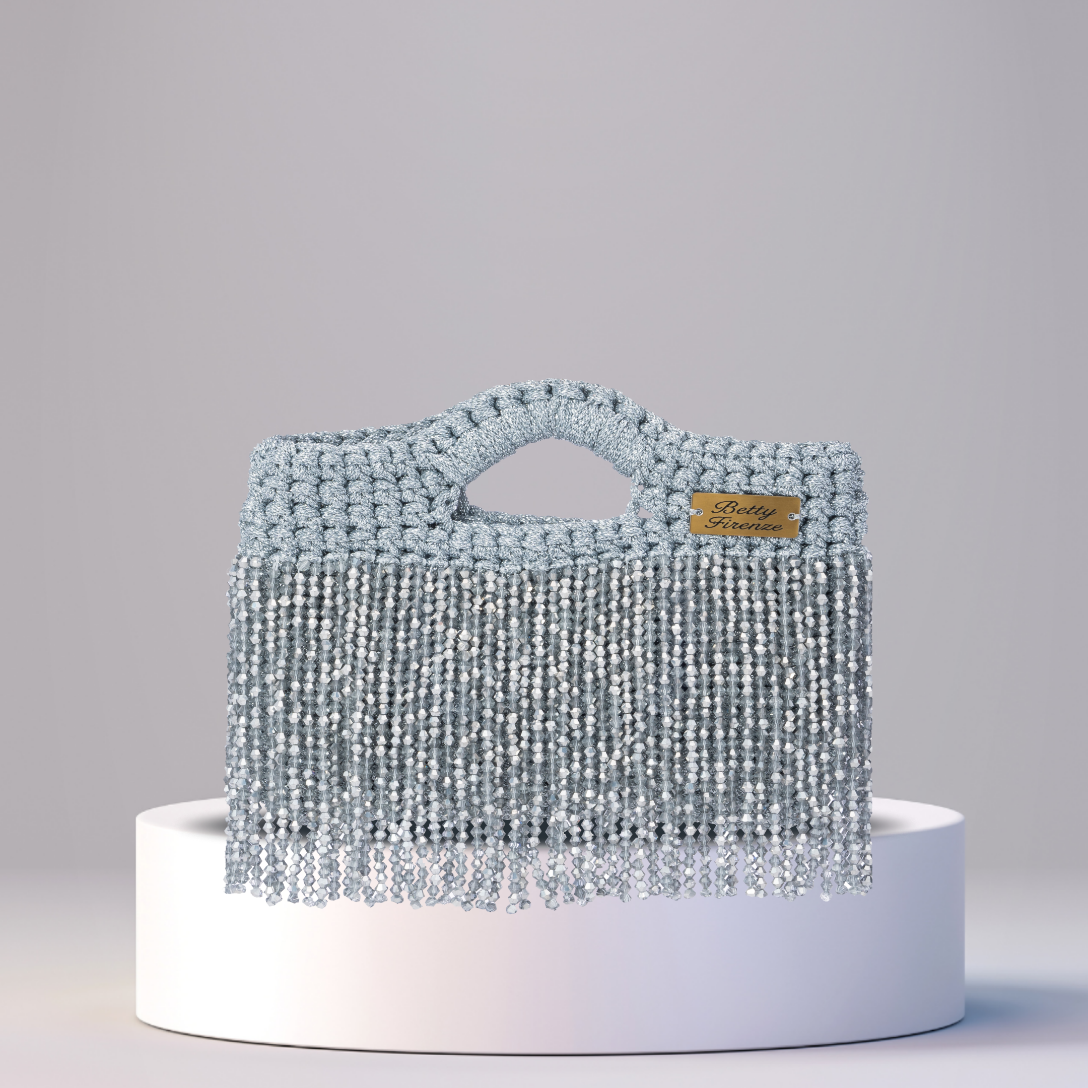 The Borsa Betty is a bold expression of playful elegance and intricate craftsmanship. Entirely handcrafted in Dubai using premium Italian yarn, this statement handbag blends artisanal tradition with spirited design. Its sculptural silhouette is defined by a richly textured weave and a seamlessly integrated handle that flows with natural ease. Along the lower edge, a cascade of hand-strung beads creates a fringe of movement and light each strand meticulously placed to evoke rhythm, energy, and individuality. A gleaming metallic nameplate adds a final touch of refinement, anchoring the piece with quiet confidence.