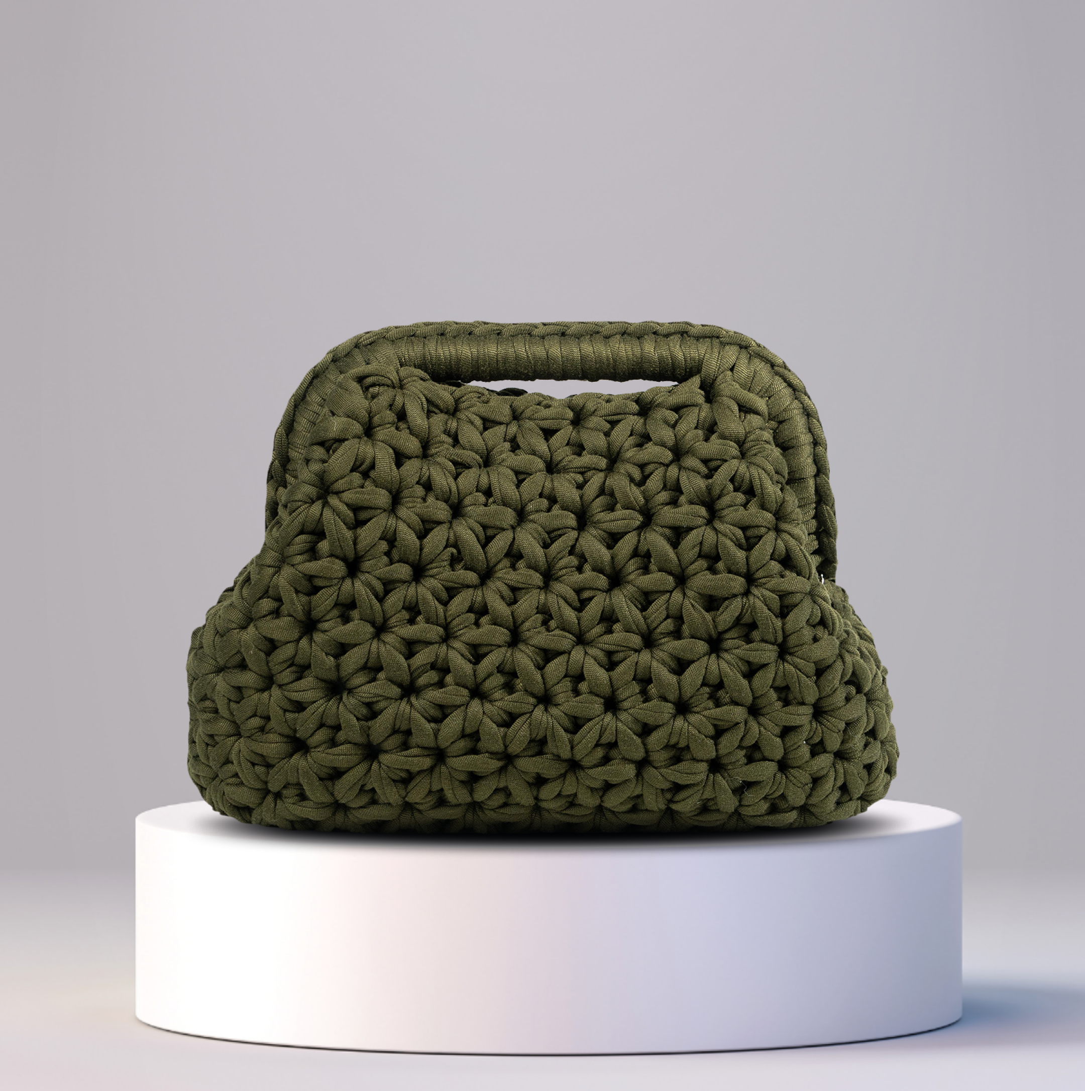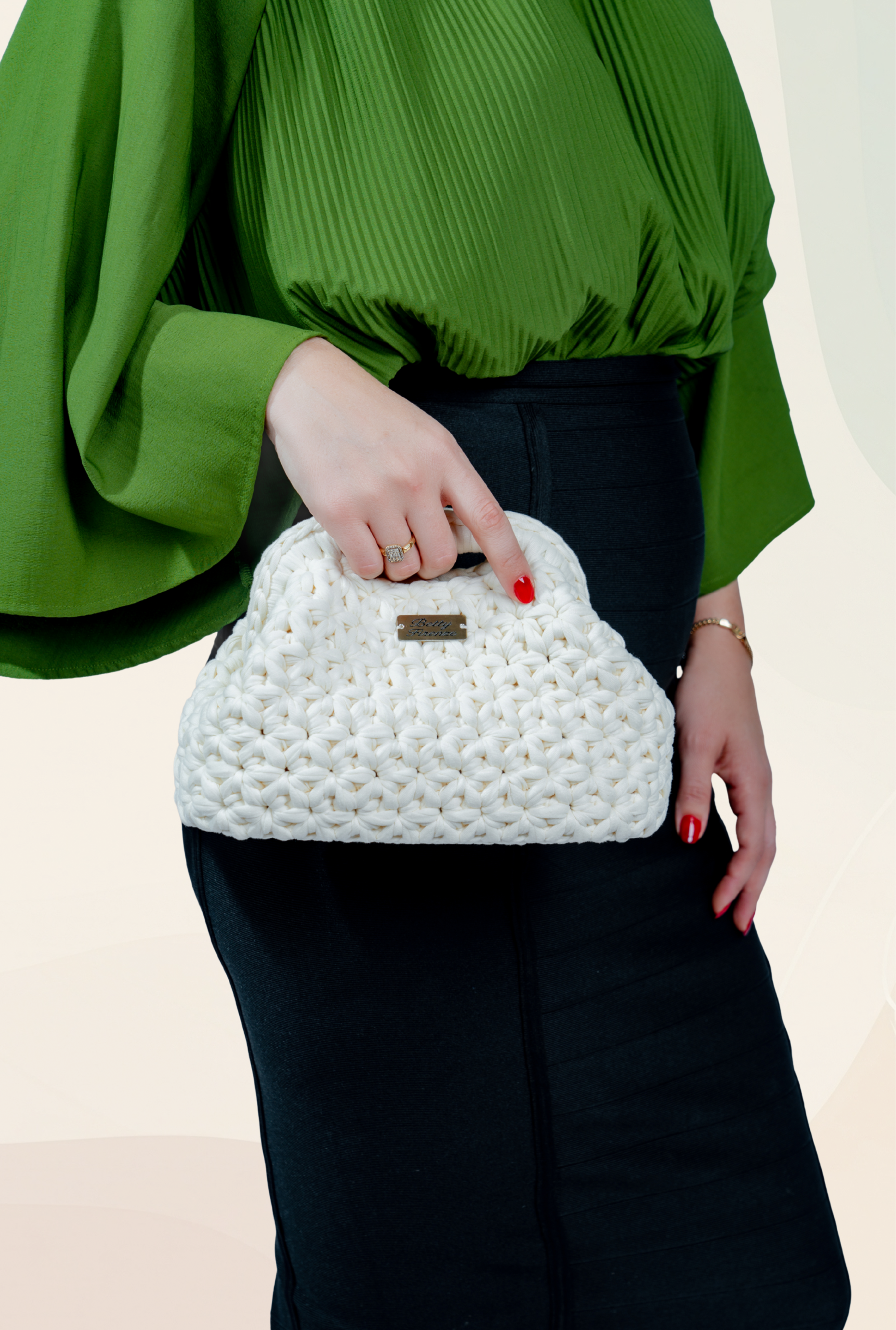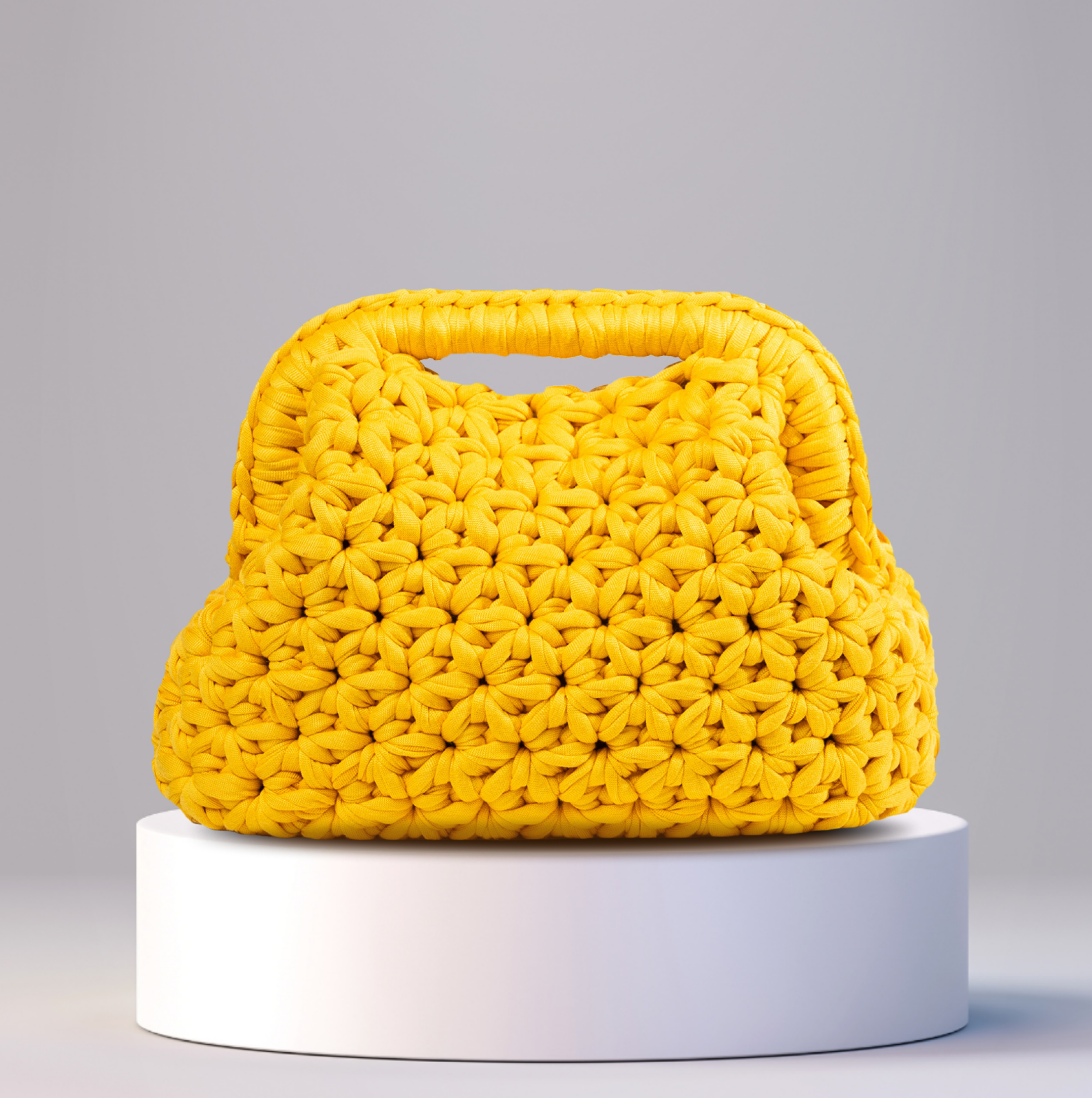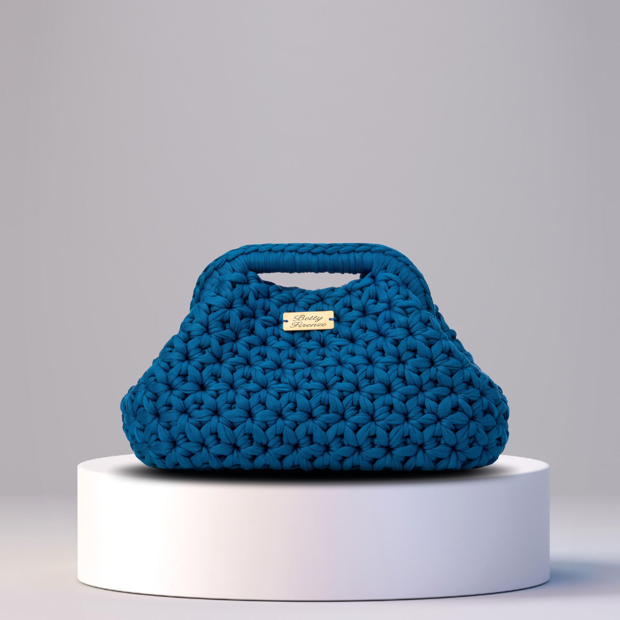 The Borsa Stella is a refined expression of sculptural simplicity and artisanal depth. Entirely handcrafted in Dubai using premium Italian yarn, this softly structured handbag embodies the quiet strength of intentional design. Its chunky woven texture offers a tactile richness that invites touch, while the silhouette curves gently into a padded handle, seamlessly integrated for comfort and continuity. A polished metallic nameplate graces the front, an understated signature of Betty Firenze’s devotion to detail and timeless elegance.
